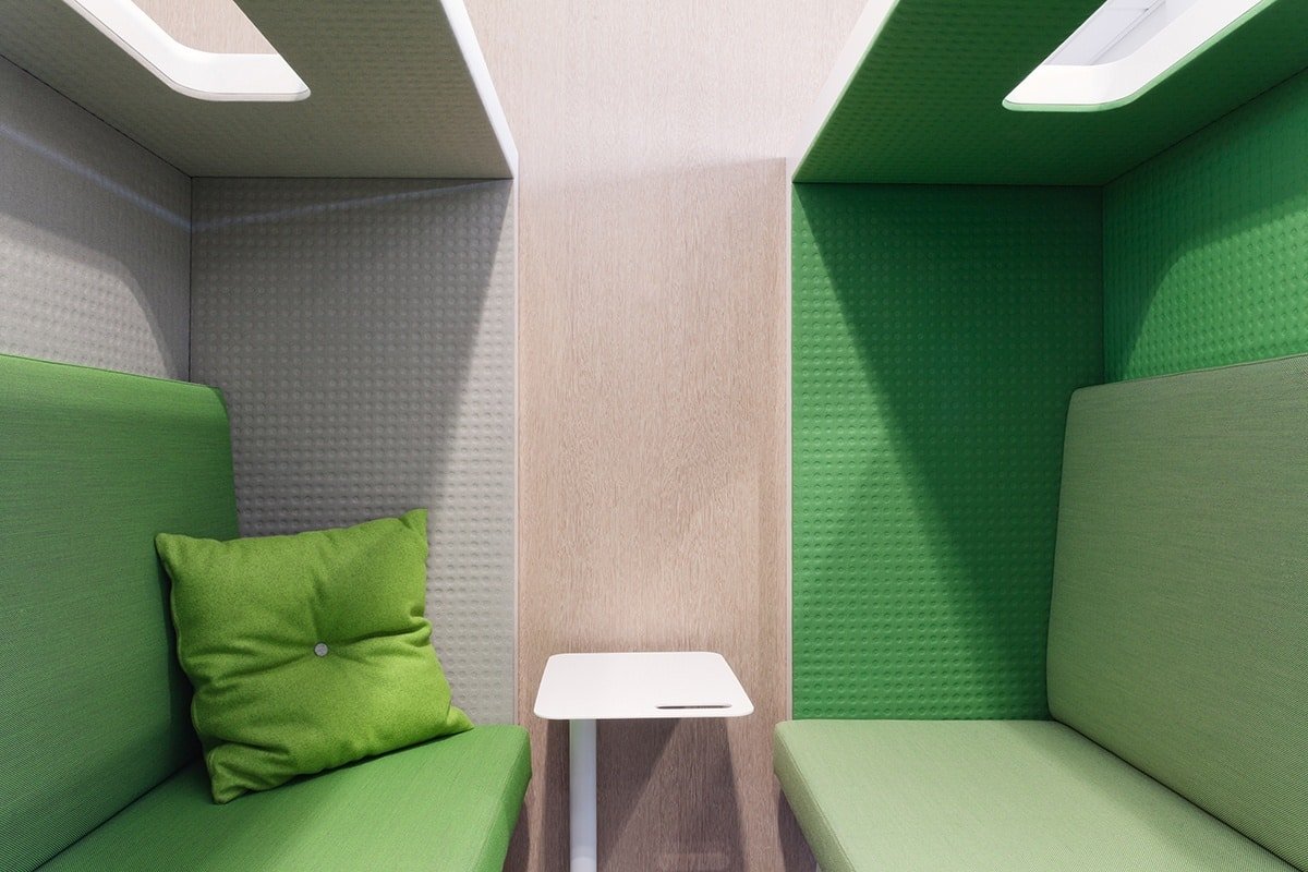 The group auxiliary staff’s new office was first introduced on our website when we shared an educational video produced by the City of Espoo. Now, you can see the office in pictures. INTO furniture pieces from modular POINT couches (pictured above) to sound-absorbing CUBE touchdown spaces (pictured below) create a truly pleasant atmosphere for the civil servants to work and relax in.