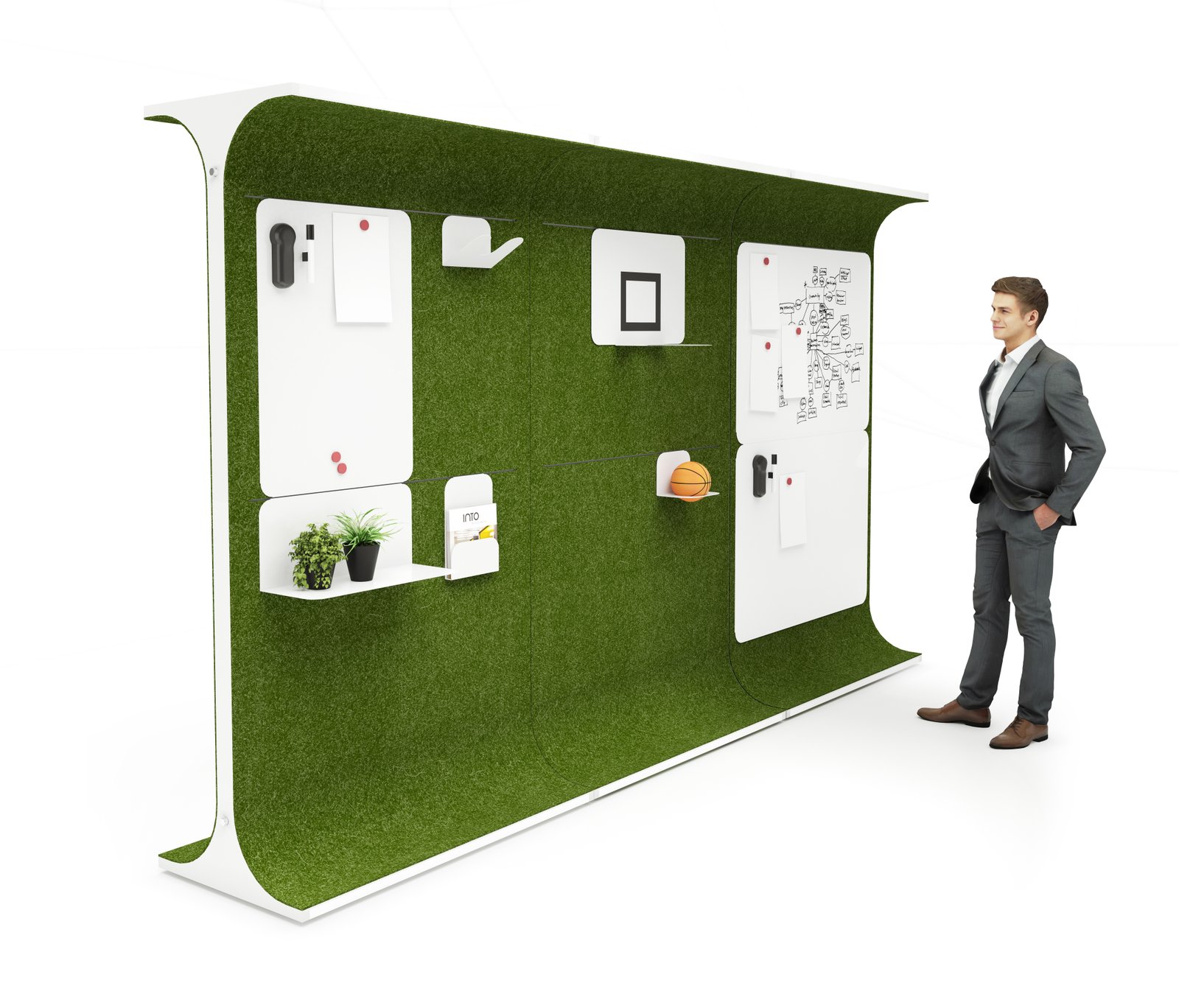 STORY WALL -tilanjakajaseinää on helppo yhdistellä, ja 90-asteen kulmapaloilla siitä voidaan koostaa huonemaisia tiloja. STORY WALLin lisäksi pääset messuilla tutustumaan sen muihin käytettävyyttä monipuolistaviin lisäosiin.