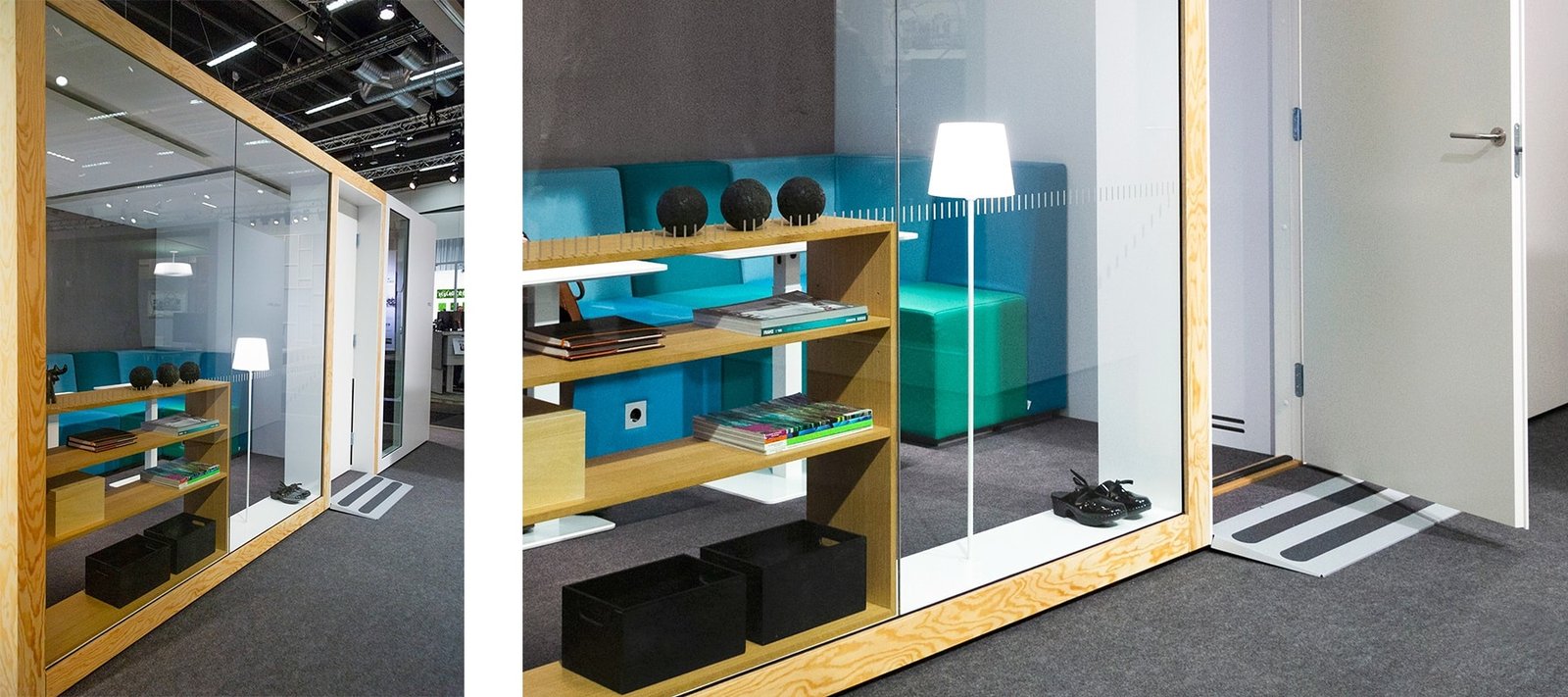 Osastollamme demonstroimme myös, kuinka yksityisyyttä lisäävät akustoidut POD 1-4 huoneemme ovat saatavilla myös leveämmällä ovella, pyörätuoliluiskalla, varauksella automaattiovelle ja muilla vaadittavilla esteettömyysvälineillä.