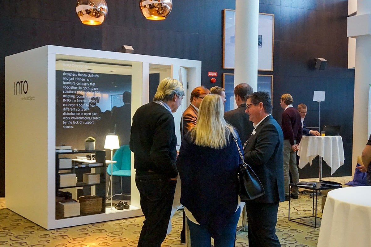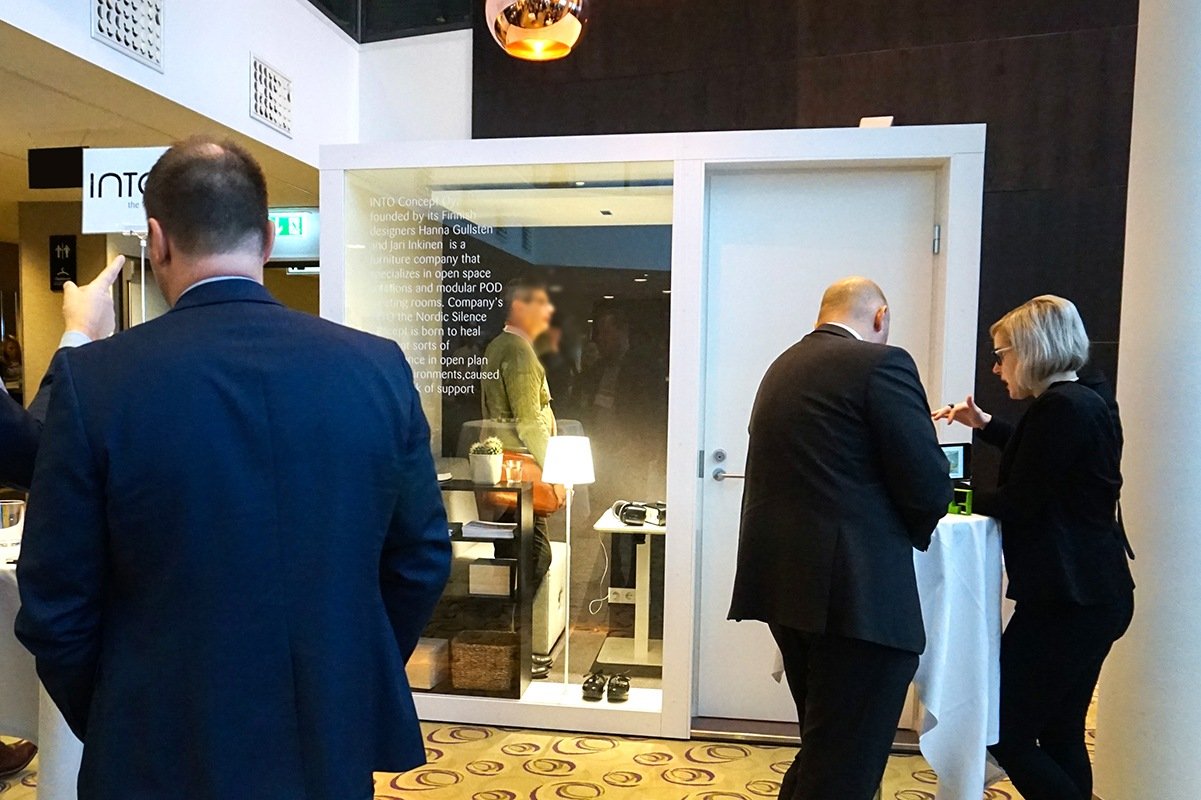 Tällä viikolla myyntitiimimme osallistui ”600 Minutes Property and Facility Management” tapahtumaan Tukholmassa. Tapahtuma järjestettiin Courtyard by Marriot hotellissa, jossa oli esillä myös mallistomme POD 2 huone. Saimme kuulla lukuisia positiivisia kommentteja sen valoisuudesta, käyttömukavuudesta ja erinomaisista akustisista ominaisuuksista. Kävijät olivat erityisen vaikuttuneita siitä, kuinka rauhalliseen tunnelmaan POD huoneessa pääsee, huolimatta ympärillä meneillään olevasta toiminnasta.