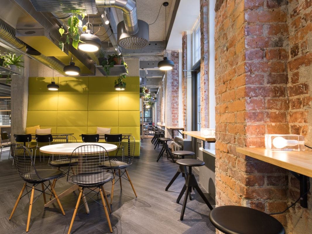 Tila haluttiin jakaa visuaalisesti erilaisiin alueisiin, jotka luovat vaihtuvia tunnelmia niin lounastamiseen kuin työskentelyyn. Rakennuksen alkuperäistä teollista estetiikkaa tuotiin remontissa esiin ja korostettiin harkitusti. Ravintolan tavoitteena on houkutella työntekijät myös lounasajan ulkopuolella tilaan työskentelemään. Uudesta henkilöstöravintolasta löytyy myös monitilatoimiston toimivuutta edistäviä INTO the Nordic Silence kalusteperheen tuotteita.