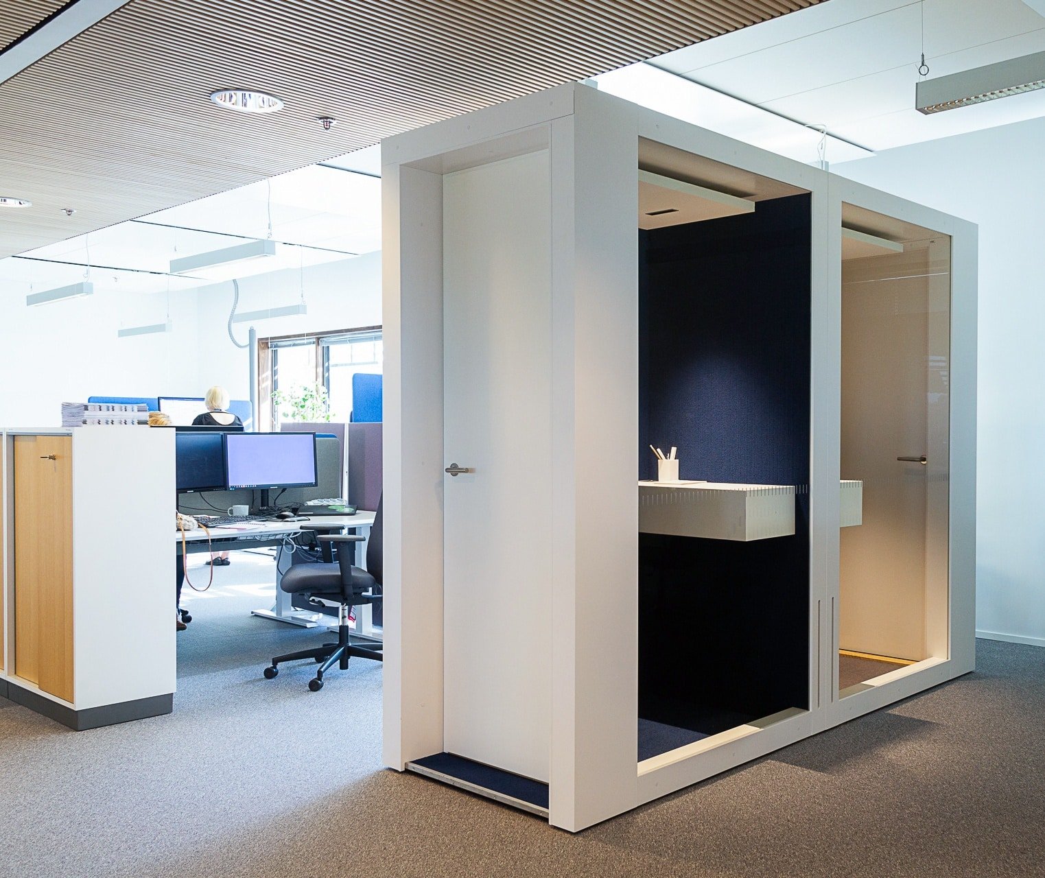 POD PHONE puhelinkopit Gasumin viihtyisässä monitilatoimistossa