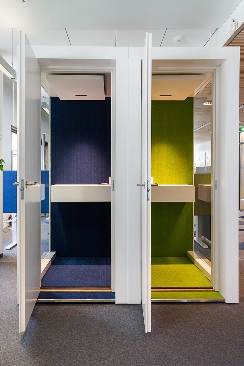 INTO the Nordic Silence -tuoteperheen puhelinkopit Gasumin uudella monitilatoimistolla.