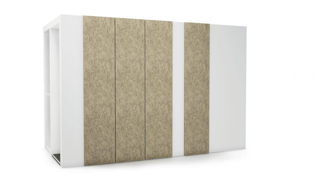 POD -paneeli on ääniystävällinen lisäosa POD-huoneisiimme. POD -paneeli on helppo kiinnittää ja irrottaa vaivattomalla kiinnitysmekanismilla, eikä jätä jälkiä POD huoneen ulkopinnalle. Melua vähentävä akustinen kuiturakenne luo sinulle ja tiimillesi ääniystävällisen työskentely-ympäristön myös POD huoneen ulkopuolella.