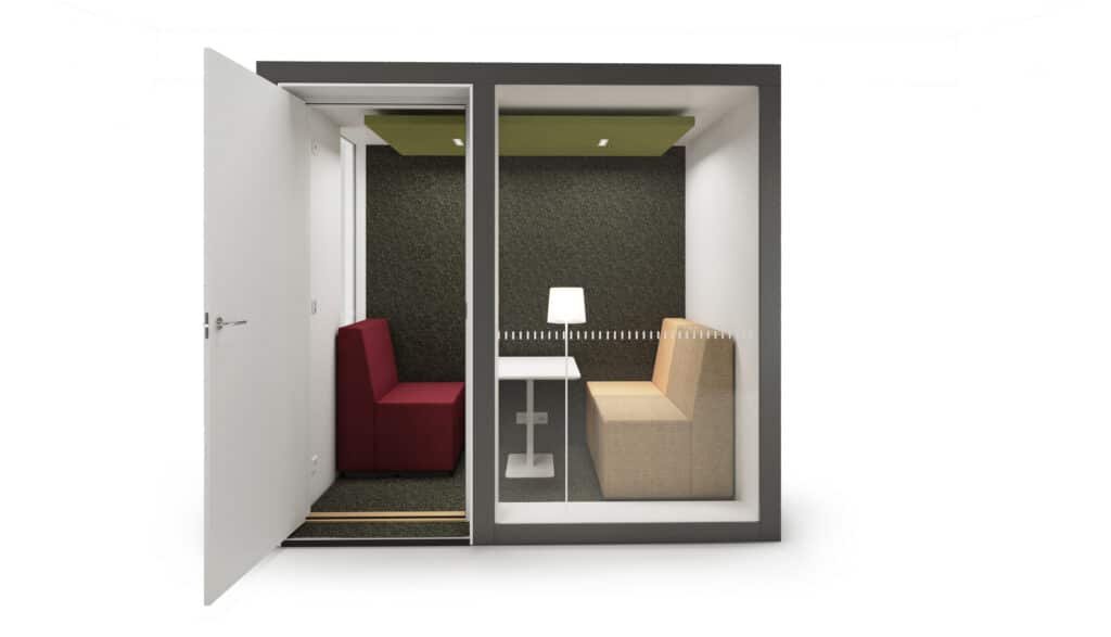POD 2 on täydellinen ratkaisu, kun tarvitset kokoushuoneen, joka on sekä mukautuva että kodikas. 1-2 henkilölle suunniteltu POD 2 on ihanteellinen spontaaneihin kokouksiin, jotka vaativat yksityisyyttä. Tarvittaessa se voidaan muuttaa jopa 4 henkilön kokoushuoneeksi tehokasta yhteistyötä varten.