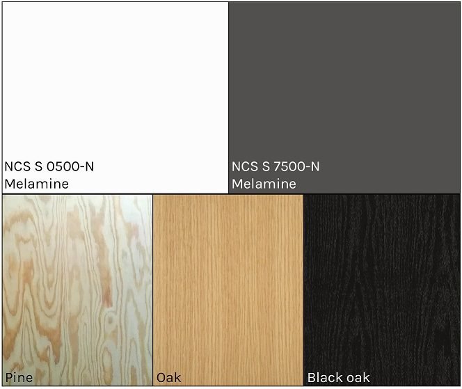 We kept our bestselling timeless white and dark grey options as well as our popular pine surface. Above these options, there is always a possibility for whichever paint color you might want, and we topped our selection with two more beautiful wooden finishes, oak, and black oak.