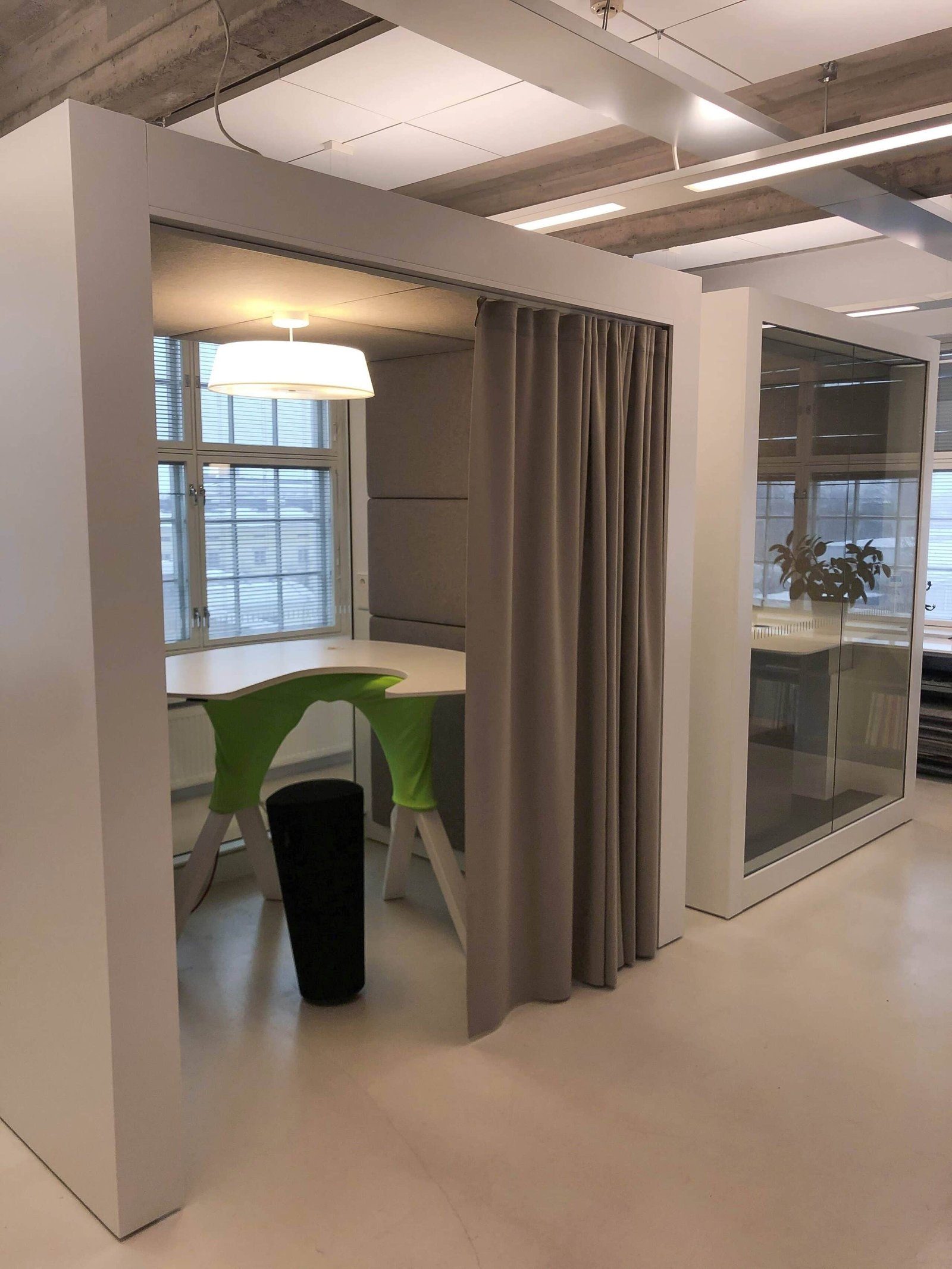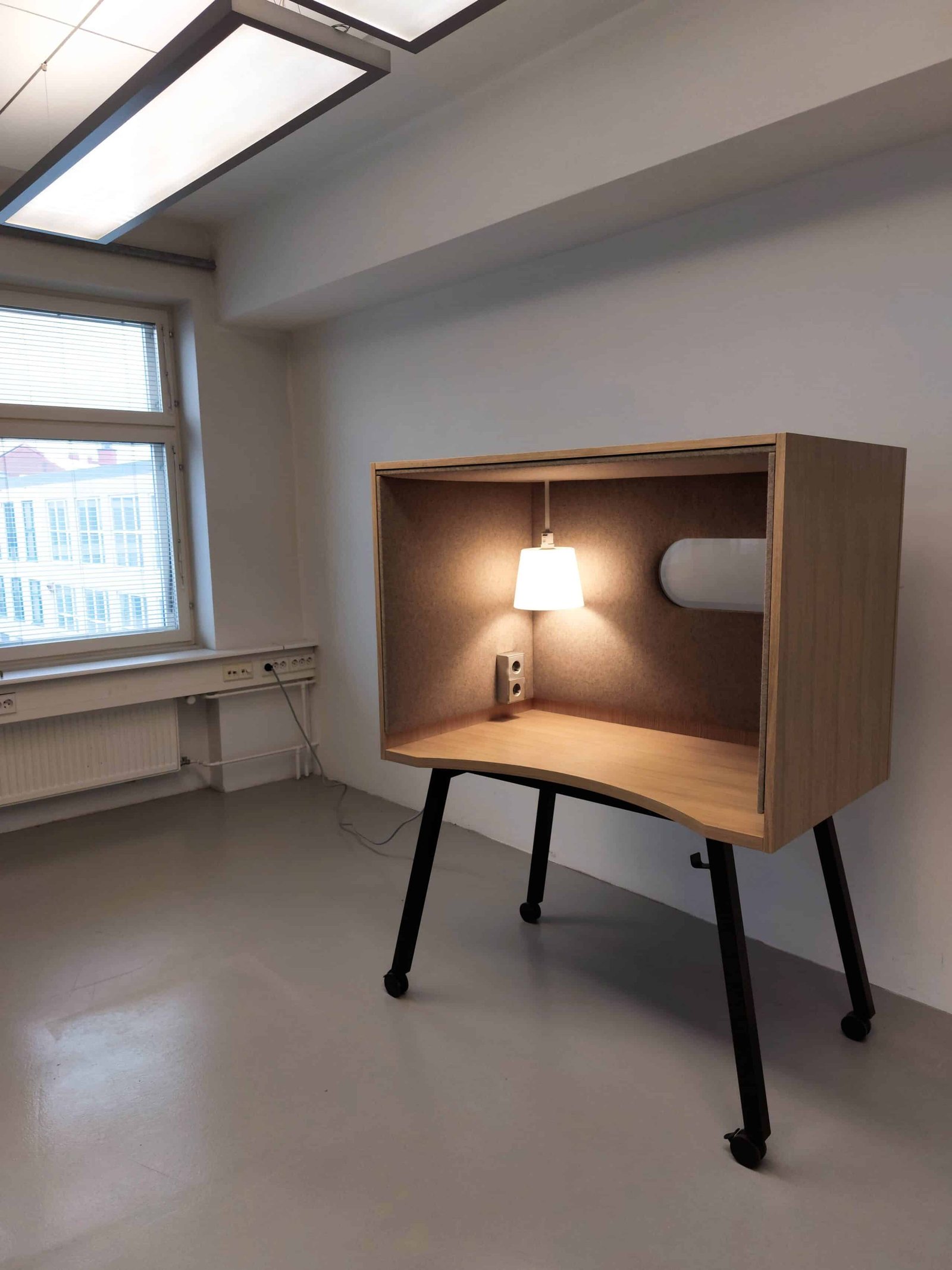 Our FOCUS table solution went through a product development process and is now so much better. We lightened the structure so that the table is even easier to move around. We also changed the light and socket positions to better serve the user. FOCUS still has excellent acoustic features and covers its user giving peace of mind.